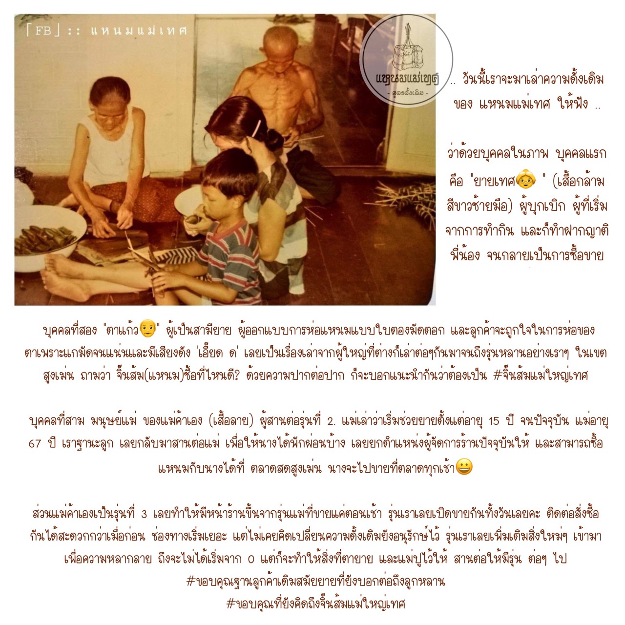 แหนม (จิีนส้ม ในภาษาเหนือ) ร้านเราเป็นแหนมโฮมเมค แหนมสด ทำใหม่ วัน ต่อ วัน #พร้อมส่งทุกวัน แหนมแม่เทศขึ้นชื่อเรื่องหนังหมูที่มีเส้นบางที่สุด สูตรดิ้งเดิม สืบทอดกันจากรุ่น สู่ รุ่น ร่วม 80+ปี *** เนื่องจากสถานะการ์ณ covid-19 แพร่ระบาด ทำให้ สินค้าในชุมชนเจอผลกระทบโดยตรง แหนมแม่เทศขอเป็นส่วนหนึ่งในการช่วยเหลือชุมชม จึงขออนุญาตคุณลูกค้า แนะนำสินค้าในชุมชนสู่ตลาดออนไลน์คะ ***